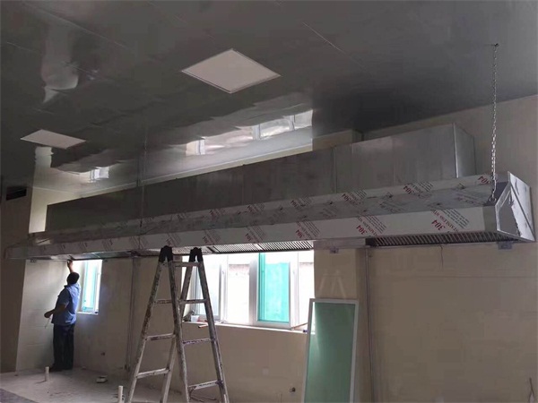 2、將煙機(jī)掛在掛板上:將吸油煙機(jī)掛到掛板上,確保吸油煙機(jī)無晃動和脫鉤現(xiàn)象并盡量保證水平;